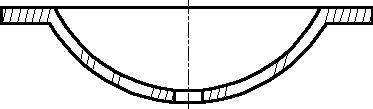 Узкие и длинные площади сечения ( например, штампованных, вальцованных и других подобных деталей), ширина которых на чертеже от 2 до 4 мм, рекомендуется штриховать полностью только на концах и у контуров отверстий, а остальную площадь сечения - небольшими участками в нескольких местах ( рис. 6 и 7). В этих случаях линии штриховки стекла (рис.8) следует наносить с наклоном 15 - 20о к линиям большей стороны контура сечения.