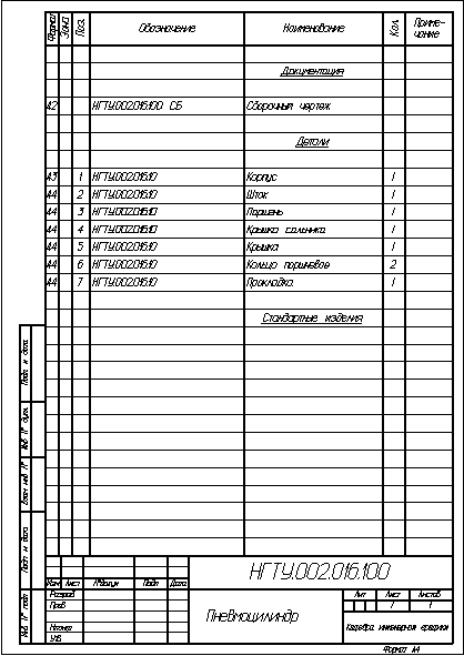 в спецификацию графу ”Стандартные