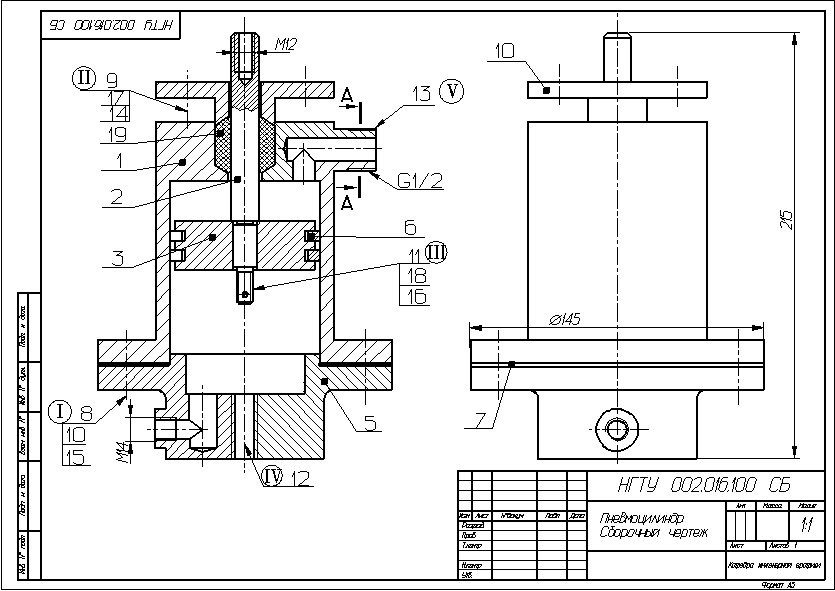 односторонних цилиндрах сжатый воздух