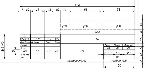 Основные надписи располагают в правом нижнем углу конструкторских документов.