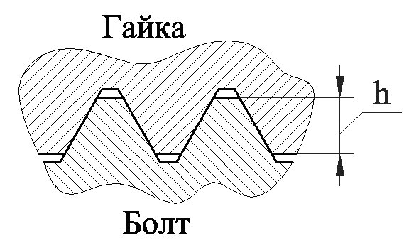 Рабочая высота профиля (h) - наибольшая высота соприкосновения сторон профиля резьбовой пары, измеренная радиально (рисунок 103).