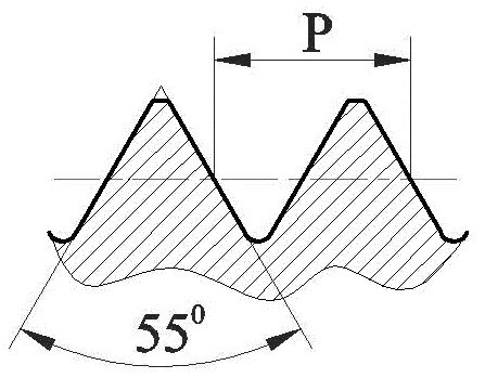 Резьба треугольного профиля с углом при вершине 55о (рисунок 106).