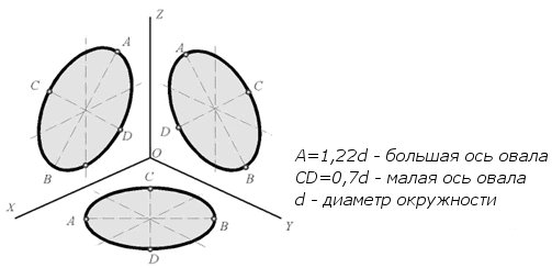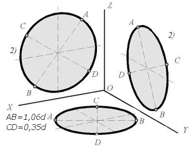 Рисунок 175 - Изометрические проекции окружностей расположенных в