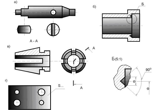 - минимальное, но достаточное количество изображений (видов, разрезов, сечений), выявляющих форму детали;