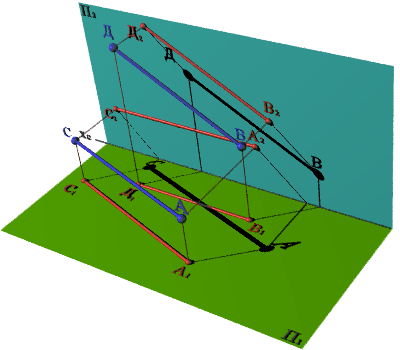 Тень, падающая на плоскость от отрезка линии, параллельной этой плоскости, равна и параллельна самому отрезку линии.