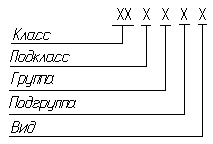 Четырехзначный буквенный код организации-разработчика назначается по кодификатору организаций-разработчиков. Код классификационной характеристики присваивают изделию и конструкторскому документу по классификатору изделий и конструкторских документов машиностроения и приборостроения (Классификатору ЕСКД). Структура кода классификационной характеристики: