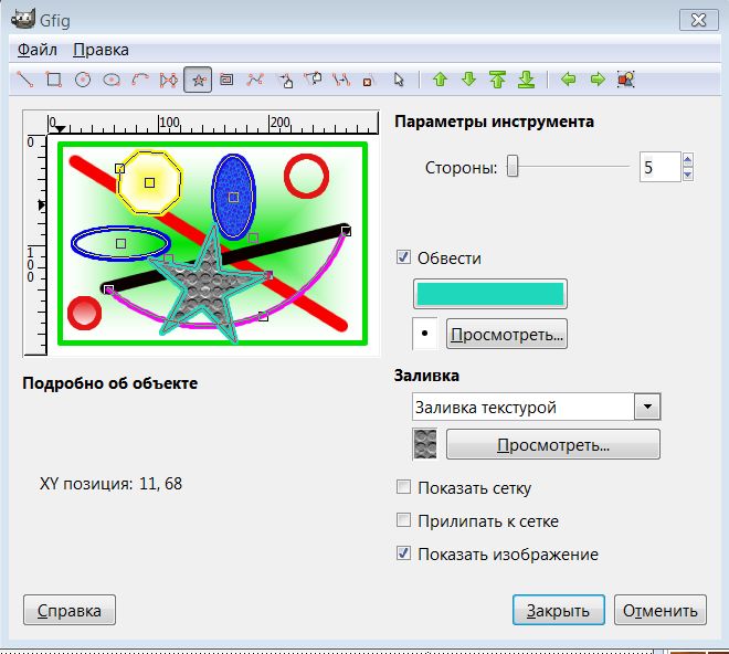Сначала определите число сторон (концов) в "Параметрах инструмента" справа от просмотра. Затем указать центр и, не отпуская кнопки мышки, переместите курсор, чтобы задать размер и ориентацию.